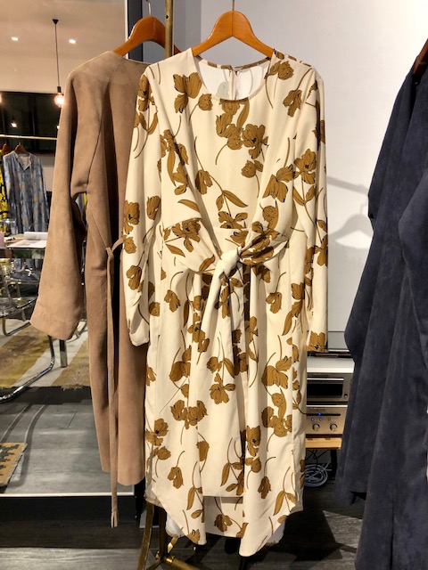 花柄ワンピース 12800円💕 とろんとした落ち感のある生地にシックな花柄がステキなワンピースです💕 着丈も十分にありますので一枚でもお召しいただけます💕👍😃 お色違いは、ベージュに赤い花柄と、ラベンダーにアイボリーの花柄がございます💕 2019年3月24日