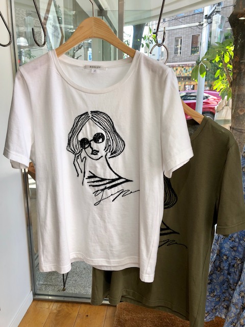 女の子プリントTシャツ 6900円💕 デザイナーのイラストを刺繍したお洒落なTシャツがもーすぐ入荷します💕😃 白、カーキ、ブラックの3カラーとなっております💕これからの季節に大活躍でーす 2019年3月31日