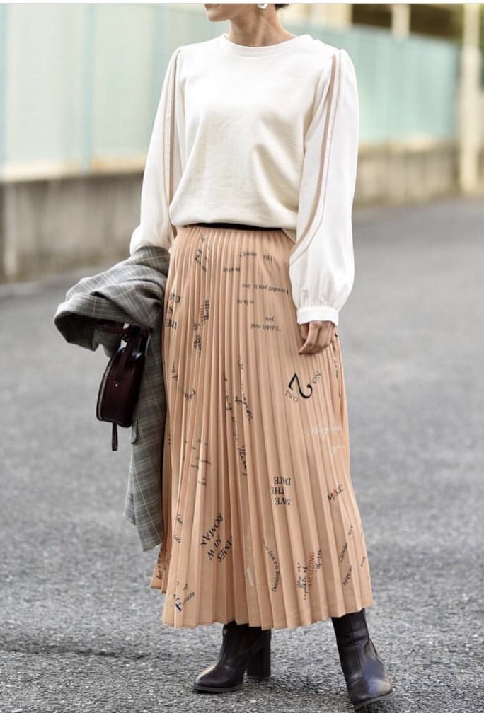 デザイントップス ベージュ 7900円💕 こちらのソフトなイメージのベージュ💕もございます😍🙌 英字プリントのプリーツスカートと合わせても、こんなにスッキリ着ていただけます💕 プリーツスカート 9800円 本日店頭で2000円の金券プレゼント🎁しております。お足元の悪い中ではございますが、ご来店心よりお待ちしております🥰 2019年3月3日