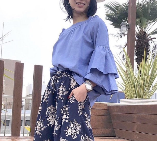 袖フリルブラウス💕11000円 この春はブルーのアイテムもきになるところ💕 こんなフェミニンテイストのブラウスなら日々の仕事で疲れ気味の気持ちもアップ⤴️してくれそう💕😆コットン100%の素材です 花柄ワイドパンツ 14000円💕 2019年4月29日