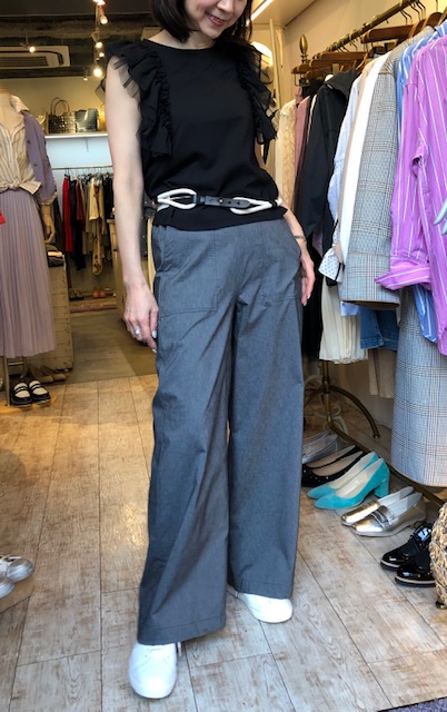 袖フリルトップス 9900円💕 袖周りのフリルがとっても素敵な一枚です💕 ブラックと白の2カラーで展開しております💕😍ロープベルトも今季の人気アイテムです💕 お色違いは茶色付属がございます😍 ロープベルト 5800円 2019年4月2日