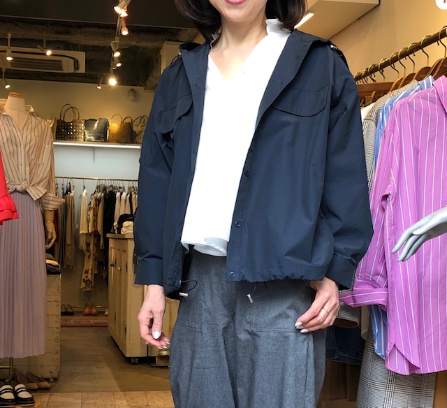 ナイロンブルゾン💕 14000円😍 シャカシャカ素材の超軽量ナイロンブルゾンが到着しました💕😍🙌 お写真のネイビーの他に、ホワイトとカーキがございますー💕💕💕 真夏も大活躍しますよぉ〜 2019年4月4日