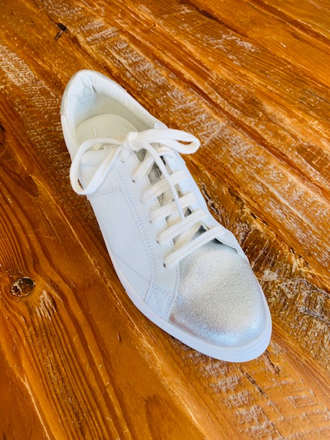 本革スニーカー💕11800円💕 トゥがメタリックのお洒落なスニーカーが週末に入荷致します💕🙌😃 ソフトレザーで軽量⭐️⭐️⭐️春は白のスニーカーでアクティブにお出かけしませんかぁーーーー? 2019年4月4日