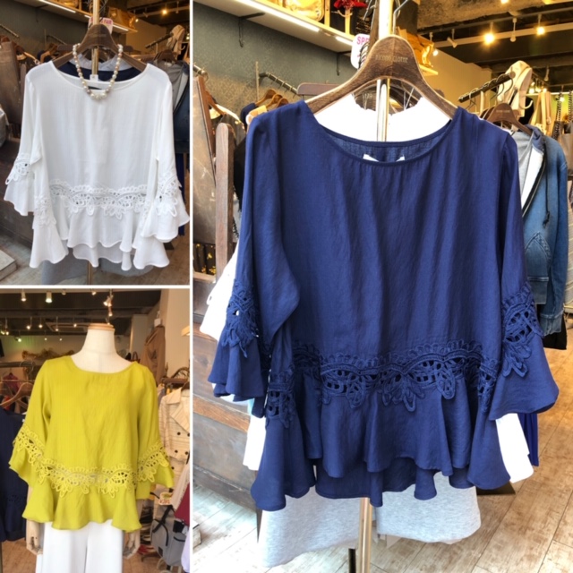 レース切り替え七分袖ブラウス💕 今日はすっかり春らしい気温になりましたねーーーー💕😃🌸大変お買い得なブラウスが到着しております⭐️🙌 サービスプライスとなっておりますので、限定数のみとなります。 これからの毎日に大活躍しますよぉ〜💕💕💕 2019年4月5日