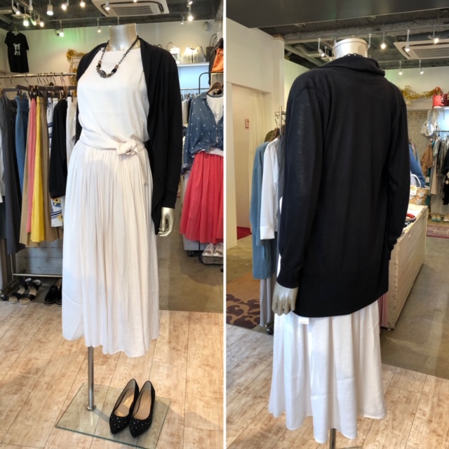 透けないアイボリーのワンピース ⭐️⭐️⭐️ すらっと美シルエットを保証するフレンチスリーブのワンピースとカーディガンのコーディネートです💕🙌😍 ワンピースは、シワにならずにいつでも新品の風合いをキープ出来る嬉しいアイテムです💕 透けないアイボリーは貴重な一枚です😆 カーディガン 4900円 ワンピース 15000円 2019年4月12日