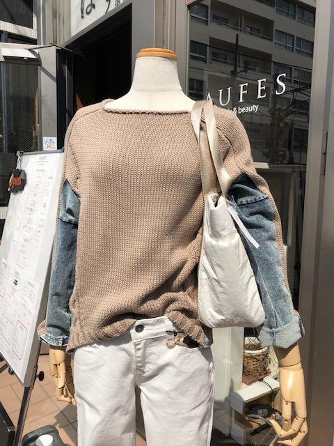 春のデザインニット 9800円💕 コットンの糸とストレッチデニムの切り替えニットです💕カジュアルで技あり⭐️⭐️⭐️👍のデザインと、ヒップが隠れる着丈が人気の秘密です💕GWのお出かけにも大活躍ですよん 美脚白デニムもぜひ合わせていかがでしょう? 2019年4月12日