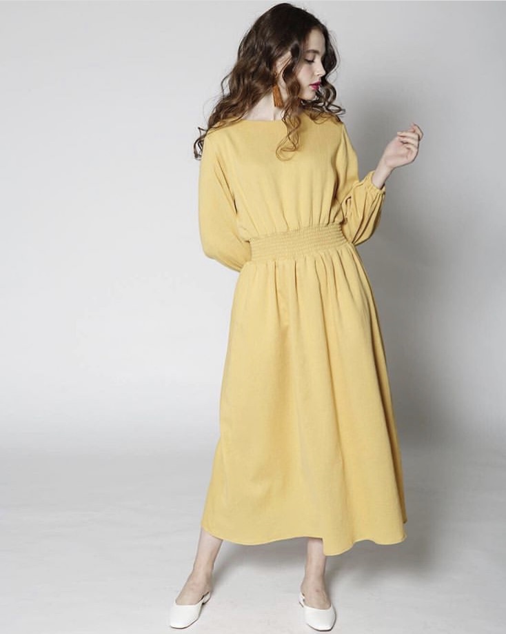 ワンピース イエロー 15000円💕 シンプルなデザインがあらゆるシチュエーションにマッチしてくれるお役立ちワンピース💕 爽やかなコットン素材で真夏も涼しく着られそう😍 お色違いはネイビーがございます 2019年4月12日