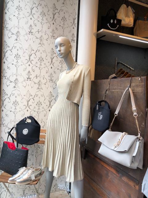 ニットのセットアップ💕 ラメのキラキラがとっても上品なニットワンピースとカーディガンのコーディネートです💕😍上品で華やかな雰囲気💕 ワンピース 15000円 カーディガン 9900円 プラチェーン バック 5900円 2019年4月12日