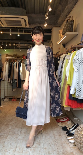 アイボリーのワンピース 17000円💕 こちらは、お色違いのアイボリーです💕 先ほどのコーディネートとワンピースのカラーを変えただけで、こんなにイメージが変わります😍 どちらも素敵です💕お好みで選んでくださいね 2019年4月18日