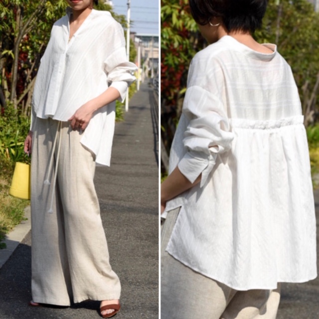 バックプリーツのブラウス 6900円💕 サラッとしたレーヨンポリエステル素材の爽やかなデザインブラウスが入荷しております💕😃洗ってもシワにならないのが嬉しい💕💕💕お色違いはサックスブルーとなっております 2019年4月23日
