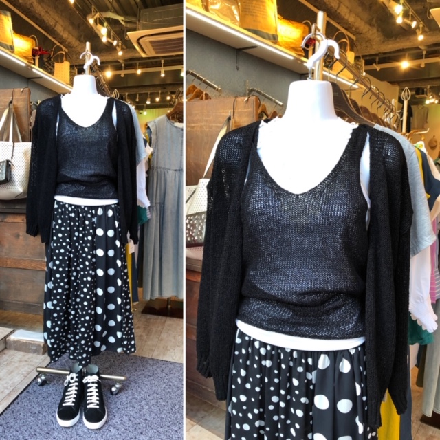 アンサンブルニット 7900円 ザックリした編み地がお洒落なアンサンブルニットです💕キャミは、テイシャツ の上に着て、ベスト風にも着こなせます。 キャミとカーディガンのセットで7900円と大変お得になっております⭐️⭐️⭐️😍お早めに見にいらしてくださいませねーーー スニーカー 12800円 2019年4月25日