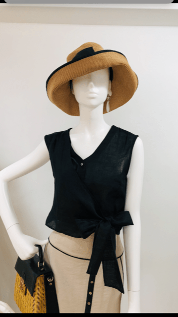 リネンカシュクールブラウス 8900円💕 初夏に爽やかで女らしいカシュクールのトップスはいかがでしょう?ウェストで結ぶリボンは、長めに垂らしておいても素敵です💕👍🎉 お色違いはベージュがございます💕 どちらも素敵ですよぉ〜😍 2019年4月25日