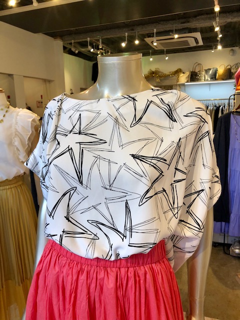 デザイントップス 💕💕💕 フロントは手書き星のプリントでバックは吸湿性の良い無地のカットソーをドッキングしたお洒落なデザイントップスはいかがでしょう?💕一枚でサラッと着てこなれ感⭐️👌バッチリです👍 カジュアルでも素材のクオリティを高めるとググッと洗練されたスタイリングになりますよん💕☺️ 2019年5月6日