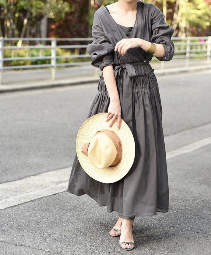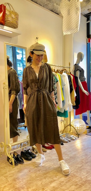 リネン素材のカシュクールワンピース💕 こちらは前を開けて羽織りものにもなるお役立ちアイテムです💕ウェスト周りの細かいプリーツがお洒落な一枚です チャコールグレーとスモーキーブルーで もうすぐ入荷します💕 リネンワンピース 17800円 2019年5月17日