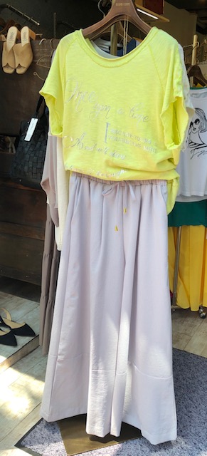 イエロー❎ライトグレーのコーディネート レモンイエローのトップスにはこんな綺麗なグレーのパンツを合わせてみてはいかがでしょう? 爽やかで着心地の良いコーディネートです💕😃 トップスはアイボリー、ボトムスはベージュ、ネイビー、ブラックと揃いました💕 トップス 7900円 ワイドパンツ 9800円💕 2019年5月17日