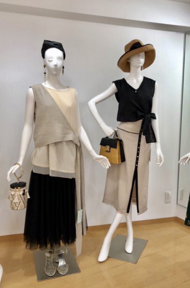チュールスカート 7900円💕 こちらは展示会でのスタイリング例です😃💕🙌大人かわいいスタイリング💕ですよぉ〜 是非トライしてみて下さいね💕 左側のチュールスカート 7900円 右側のタイトスカート 13800円 右側のリネンのブラウス 8900円 2019年5月18日