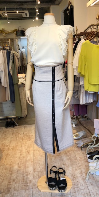 ダブルフリルトップス 9900円💕 二の腕を細く見せてくれるダフルフリルのトップスが再入荷致しました💕😍 タイトスカートやデニムに合わせて甘辛ミックスな着こなしにもGOOD💕💕💕 今日明日の二日間は掘り出し物の大特価アイテムも店頭に並びますので、是非見にいらしてくださいませねーーー💕 デザインタイトスカート 13800円💕 サンダル 9800円 2019年5月18日
