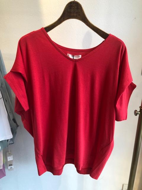 デザインTシャツ 4900円💕 綺麗なネックラインを作ってくれる美シルエットのTシャツです💕とろみ素材のカットソーなので女らしいシルエットが嬉しい⭐️⭐️⭐️ お色は白とネイビーもございます💕 デニムやベージュのボトムスに合わせて赤も可愛いです😍 2019年5月18日