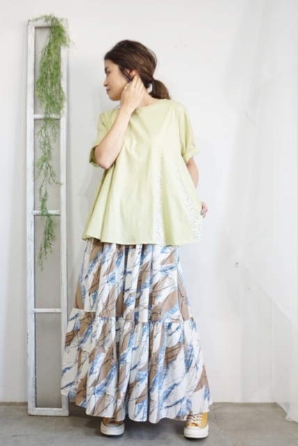 プリントティアードスカート💕14800円 爽やかでシックなプリントがステキなティアードスカートが到着しました💕😆🙌 軽くて着やすいコットン素材💕です ティアードスカートの甘さをエッジの効いたプリントが上手く引き締めてくれるとってもお洒落なアイテムです😆👌 スニーカーやスポーツサンダルにもバッチリですよぉ〜 2019年5月24日