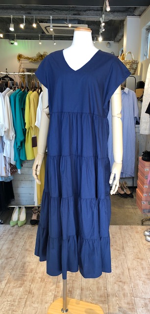 ネイビーのティアードワンピース💕 14000円 引き続き大人気のティアードワンピースのネイビーとカーキが再入荷致しました💕😍 半袖とスッキリしたVネックが着痩せ感を保証⭐️⭐️⭐️とにかく暑がりなの💦というお客様、必見ですよ🙌😃 コットン生地の良さも嬉しい一枚です😆 2019年5月29日