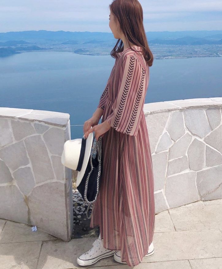 ボヘミアンワンピース 17000円💕 オリジナルのデジタルプリントの生地を使ったデザイナー渾身の一枚です💕ボヘミアンな柄とスッキリしたキーネックがポイント💕長袖のお袖は5分袖にもなるので、一枚でサラッと着られるのが嬉しい💕 ワンピース 17000円 2019年5月28日