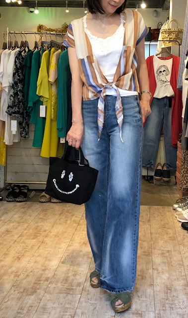 デニムワイドパンツ 14000円💕 絶妙な色落ち感がカッコ良いデニムパンツとエスニックなボレロのコーディネートはいかがでしょう? なかなか無い一品モノのデニムがこんなプチプラなのが嬉しい💕💕💕 MサイズとLサイズがございます 2019年6月1日