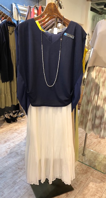 キャミワンピース 6900円💕 シンプルなVネックのバックテールのトップスとキャミワンピースを組み合わせです💕 プリーツスカートの付いたキャミワンピースは、お写真のようなトップスやシャツワンピース のインナーにも使えて大変便利なアイテムですよーーっ💕😃🙌 お色はブラックもございます💕 Vネックプルオーバー 7900円💕 コメントは受け付けていません。