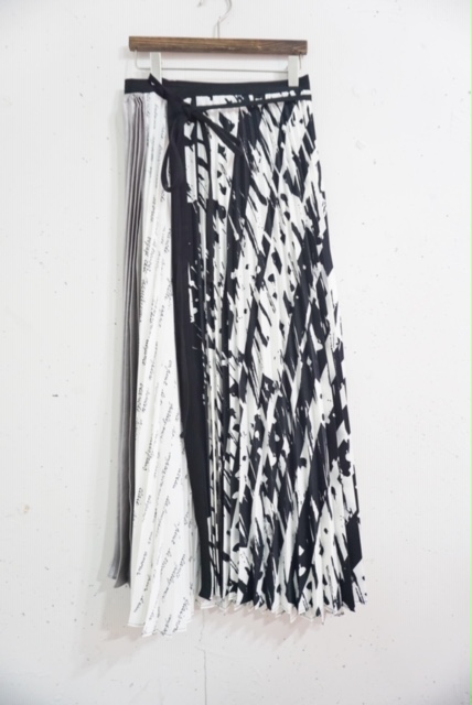 配色巻きプリーツスカート 14800円💕 オフ白のプリント、ベージュ無地と手書きプリントの3配色で、2パターンの柄を楽しめるプリーツスカートです💕👍😍とってもスタイリッシュな一枚です⭐️⭐️⭐️ 2019年6月1日