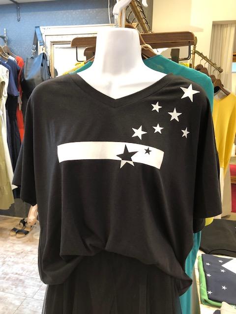 星Tシャツ 5900円💕 こちらも着心地GOODな美鎖骨Tシャツです⭐️⭐️⭐️白、カーキ、ブラックで到着しました😃お洒落なTシャツが20型以上入荷しておりますので、ぜひお楽しみにです😍 2019年6月1日