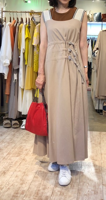綿麻のデザインワンピース😍 15800円 かなりお洒落なデザインワンピースが到着しております💕😍 ウェストの紐を縛る事で、全く違うシルエットを2パターンで楽しんでいただけますーー💕 裏も貼ってあるので、透けも気になりません⭐️👍お色違いはブラックがございますーー チェーンバック 9800円 インナー 4900円 2019年6月10日