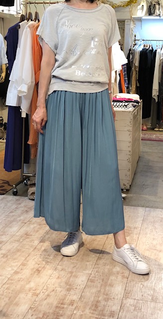 カラーワイドパンツ 10800円💕 サラッサラーの着心地とすっきりシルエットで大好評の8分丈ワイドパンツが到着しております💕お写真のブルーの他に、マスタード、ネイビー、グレージュがございます😃🙌 是非見にいらしてくださいませーー トップス 7900円💕🇮🇹 2019年6月10日