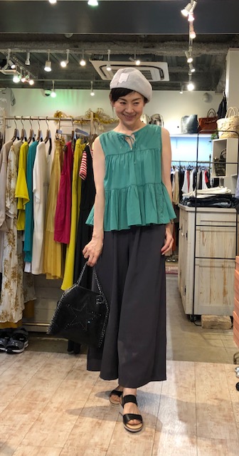 ティアードブラウス 4900円💕 コットン素材のブラウスはいかがでしょう? 綺麗なグリーンが素敵です💕 お色違いは、ブラックになります🎉 ワイドパンツ 9800円 サンダル 13000円💕 2019年6月10日