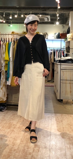 コットンブラウス 5900円 コットン素材のブラウスはいかがでしょう?真夏でも日差しを気にしないで爽やかに着ていただけます前立ての部分の刺繍やアンティークテイストのぼたんがとっても素敵なのですー お色違いは白がございます 裾フリンジタイトスカート 12000円 2019年6月10日