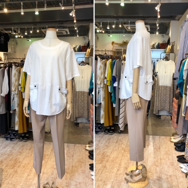 ビックシルエットプルオーバーとテーパードパンツ💕 ポケットのデザインがフロントに付いた半袖のプルオーバーと美脚シルエットのテーパードパンツでコーディネートしてみました💕😃 パンツはとにかく生地が良いので、いつでも綺麗なセンタープレスのキチンとスタイルが持続しますよーーーー シンプルでいて機能的、またデザインが効いた組み合わせです💕 プルオーバー 9800円 テーパードパンツ 9800円 2019年6月12日