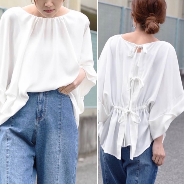 バックリボンのブラウス 5900円💕 こちらも大人気のバックリボンブラウスが再入荷致しましたっ💕🙌 オフ白とロイヤルブルーの2カラーとなります。しなやかなポリエステル素材なので、シワになりにくいのが魅力的です⭐️⭐️⭐️ 肘までのお袖なので梅雨寒のシーズンにも大活躍しますよーーー💕 2019年6月14日