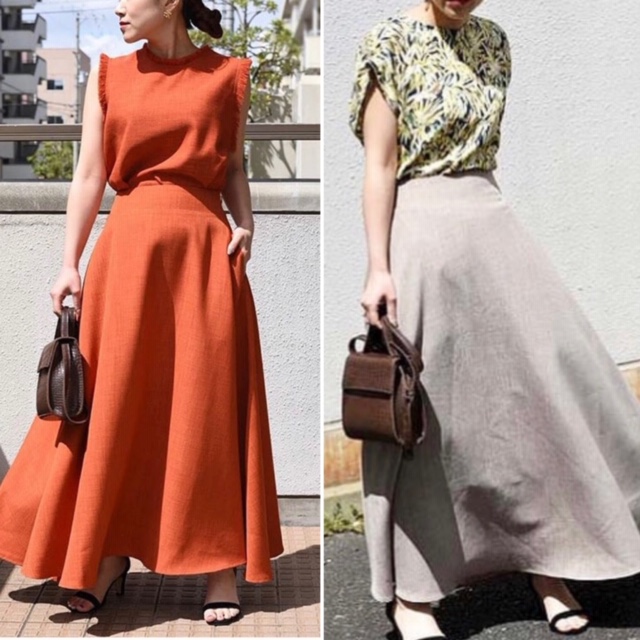 オレンジとベージュのロングスカート 8900円 単品でもまた、セットアップでドレスアップも可能なオシャレなアイテムです💕👍 ネイビーもございます このプチプラは見逃せませんよーー⤴️ フリンジトップス 5900円💕 2019年6月14日