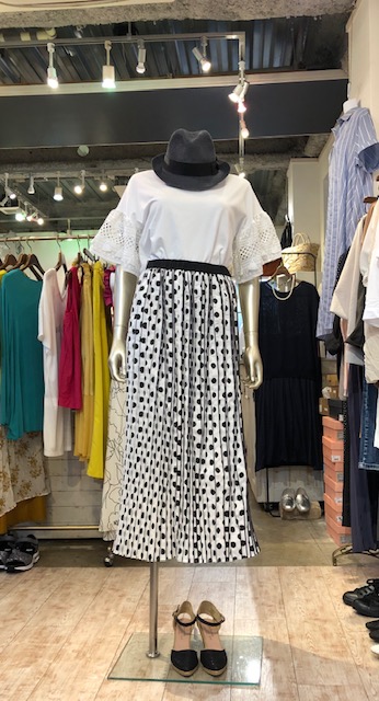 ドットのスカート 10800円💕 ドットとプリーツをミックスした大変お洒落な生地のスカートが到着しております💕😃 とにかく今季はお洒落なデザインと生地が沢山ございます💕 いつもシンプルなパンツの方も、是非とも新しいスカートの世界にトライしてみてくださいねーーー🎉 新作のアイテムは心が踊りますね💕お洒落して、ステキな毎日をお過ごしくださいませー🙌😃 レースデザイントップス 9800円💕 2019年6月14日