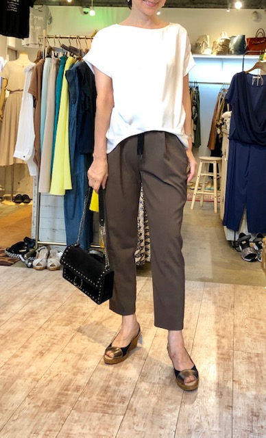 フロントタックプルオーバー SALE💕 布帛とカットソーをドッキングしたお洒落なプルオーバーが再入荷しました💕 フロント部分はしなやかなポリエステル素材で、バックは吸湿性の優れたカットソーを使った、毎年大人気のアイテムです👍⭐️⭐️⭐️ サラッと着るだけでサマになる嬉しいアイテムです💕💕💕 本日より15%オフとなりますよぉ〜 8900円→ 7565円💕💕💕 パンツ 9800円💕 2019年6月20日