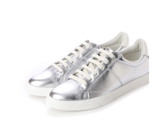 シルバーのスニーカー 11800円💕 牛革に箔プリントのお洒落なスニーカーが入荷しました💕😊 中敷のインソールのアーチ部分がふっくらしていて、足の疲れを緩和してくれる快適なデザインです💕💕💕 汚れてもサッと拭けて、汚れも付きにくい😃 運動靴っぽく無いので、フェミニンな着こなしにも合わせやすいスニーカーです⭐️⭐️⭐️ 2019年6月21日