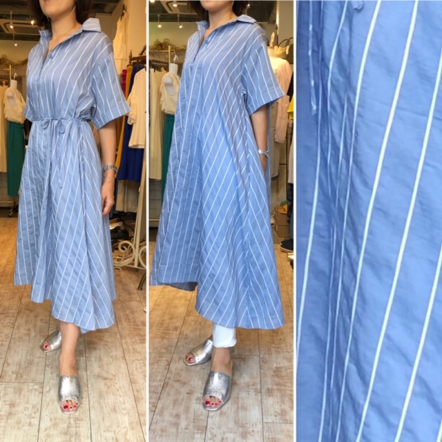 シャツワンピース💕👍 11000円💕 サックスブルーに白のストライプが爽やかなシャツワンピース はいかがでしょう? そのままストンと来てカジュアルに、、 また紐で結んで、キチンとスタイルにもなりますよぉ〜💕😃🙌 サンダル 18000円💕 2019年6月24日