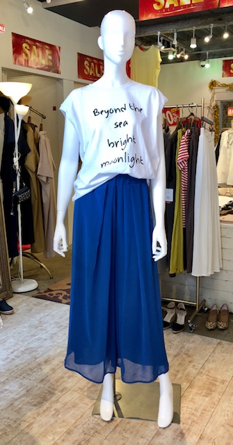 ロゴTシャツ 3430円💕 白のビッグシルエットTシャツとシフォンのワイドパンツのコーデはいかがでしょう?💕😍 この夏ブルーがとっても人気です💕ブルー❎白、ブルー❎ネイビーなどなど、ぜひ試してみてくださいねーーー💕 ワイドパンツ 6860円🎉 2019年7月31日
