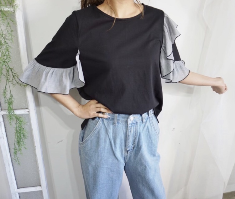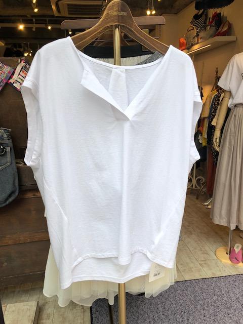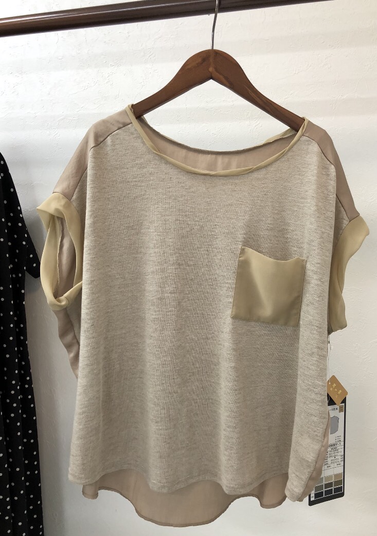 ポケット付きデザインカットソー 4900円💕 新作デザイントップスは、お洒落な切り替えとラウンドの裾のデザインでスラリとしたシルエットを実現します💕💕💕 白、黒、ベージュ、グリーンの4カラーとなっております☘️ サラサラの着心地、快適です😃 2019年7月2日