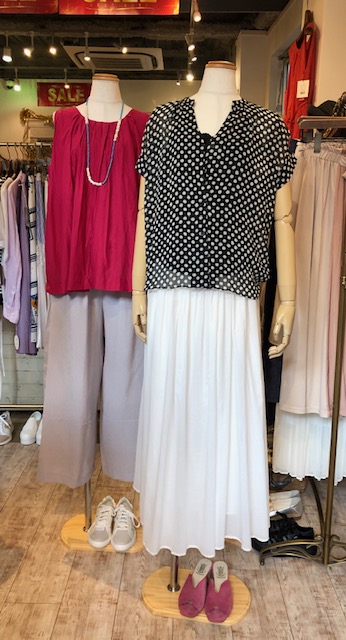 ドットのブラウス 6230円 SALE💕 展示会オーダーのドットのブラウスが大人気です💕💕💕半袖のシフォン素材で、とっても高級感がありますよぉ〜💕🙌 ローズピンクのブラウス 5500円💕 こちらは、ピンク、黒、ブルー、白の4カラーだとなっております💕 2019年7月9日