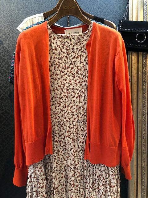 小花柄のワンピース💕8900円💕 こちらがアイボリーです💕オレンジ色のカーディガンは何と40%オフ😆 羽織物は欠かせないアイテムになりますよぉ〜 カーディガン 11000円→6600円💕😃 2019年7月9日