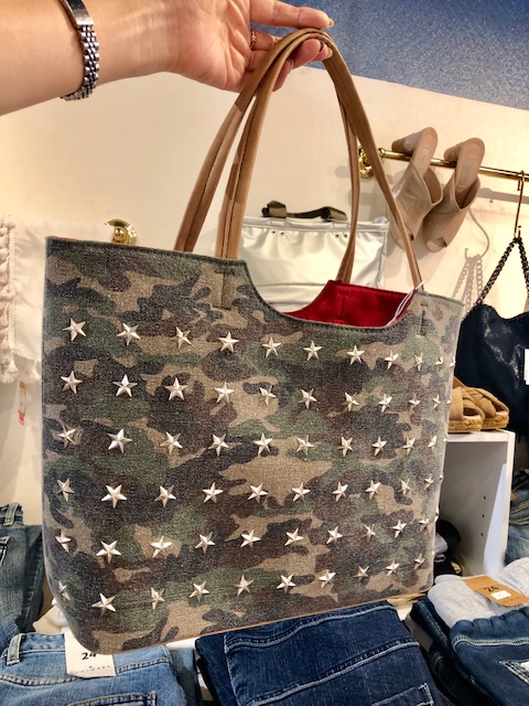 迷彩&星スタッズのトートバッグ💕SALE 迷彩生地にシルバーの星のスタッズがステキなトートバッグが30%オフ💕💕💕となりました🤗オールシーズンお使いいただけますよぉ〜 限定一個です👍 バック 7900円→ 5530円💕 2019年7月9日