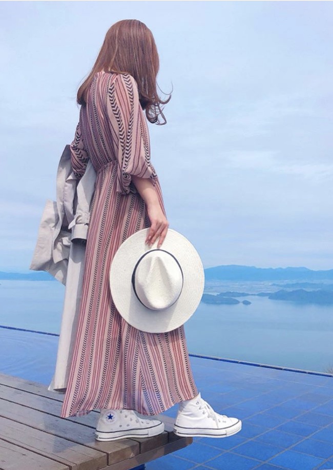 ワンピース💕11200円💕 オリジナルプリントがとってもお洒落なワンピースです💕お色違いはマスタードカラーもございますよぉ〜☘️軽いポリエステルシフォン素材ですので、シワにならずにホームクリーニングOK 2019年7月10日