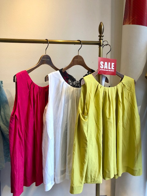 コットンブラウス 4830円💕SALE🎉 大人気のコットンのブラウスが特別価格となりました💕薄手のコットンの裏地も付けてあるので、一枚でサラリと着ていただけますよぉ〜💕😃🙌 白、黄色、ピンク、ネイビーの4カラーで展開しております💕 2019年7月13日