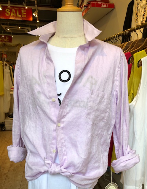 リネンシャツ 30%オフ 7700円💕 上質なリネン100%のシャツが再入荷して参りました💕ベージュ、ブラック、ネイビー、ラベンダーの4カラーとなっております💕😃 まだまだ肌寒い梅雨の時期、長袖アイテムは必需品ですね💕👍 2019年7月13日