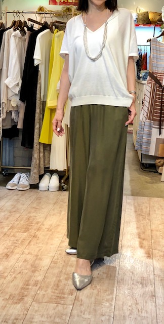 Vネックニット 40%オフ💕🎉 コットン素材の上質なニットが40%オフ🎉 女らしさ漂うVネックで着痩せ効果も抜群です💕オフ白、ブラック、ベージュの3カラーとなっております ニット 14000円→8400円🎉🎉🎉 ワイドパンツ 9800円→6860円💕 パンツはブラックもございます 2019年7月14日