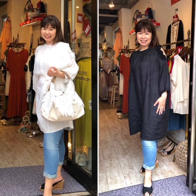 大人気の肩空きのチュニック💕 ソフトなリネン素材の肩空きチュニックが大好評です💕白も黒もステキです💕 お家でお洗濯して、翌日サラッと着られます⭐️ シワにもなりにくいので、アイロンなどは不要ですよん⭐️⭐️⭐️ チュニックワンピース 11000円→8800円 2019年7月15日